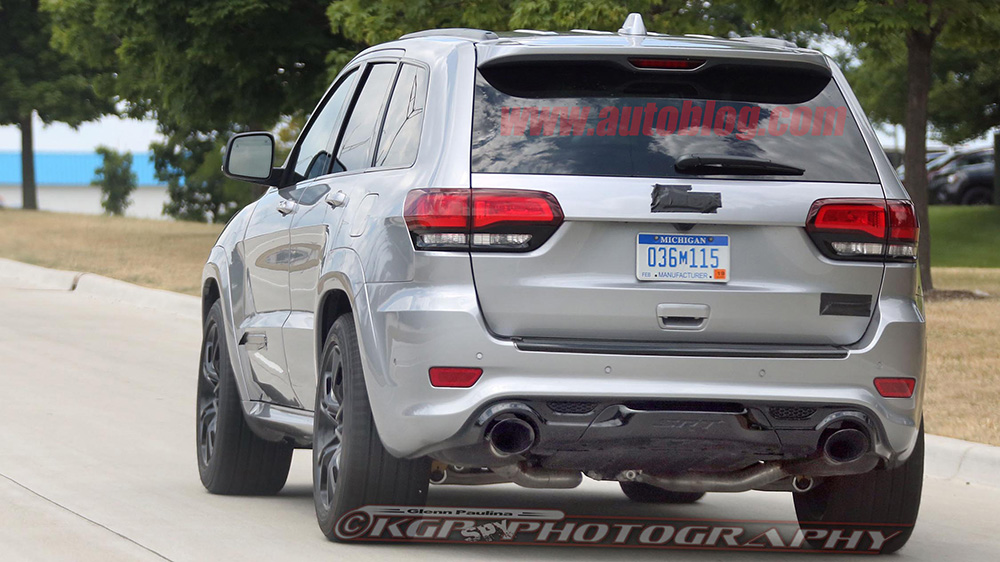 Din fotografiile surprinse de americanii de la AutoBlog, modelul de top, care se pare că va purta numele de Trackhawk, nu se va deosebi prea mult de actualul SRT. Grila superioară a fost puțin îngustată, pentru a face loc prizelor de aer imense din bara de protecție, care ajută Hellcatul să respire adânc. În general, orice porțiune din zona frontală a fost transformată în priză de aer, chiar și proiectoarele de ceață de tip LED fiind înconjurate de grile necesare răcirii motorului.