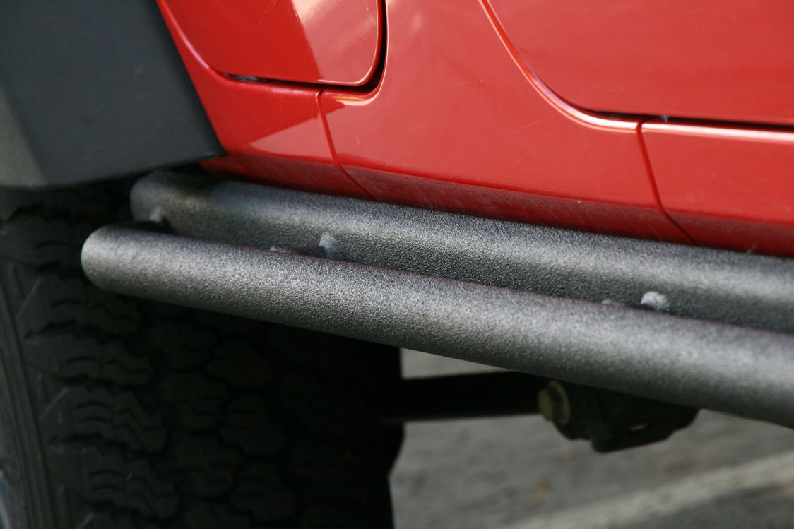 În teren lucrurile trec însă în extrema cealaltă, iar Wrangler va scoate la lumină un întreg arsenal pe care îl are în dotare şi care va ţine impune respect în faţa oricărui SUV, oricât de bine dotat ar fi. Aici totul se rezumă la câteva caracteristici, cum ar fi soliditatea componentelor, capacitatea mare de flexare şi demultiplicarea din transmisie, ajutată în mod decisiv de echiparea cu reductor.