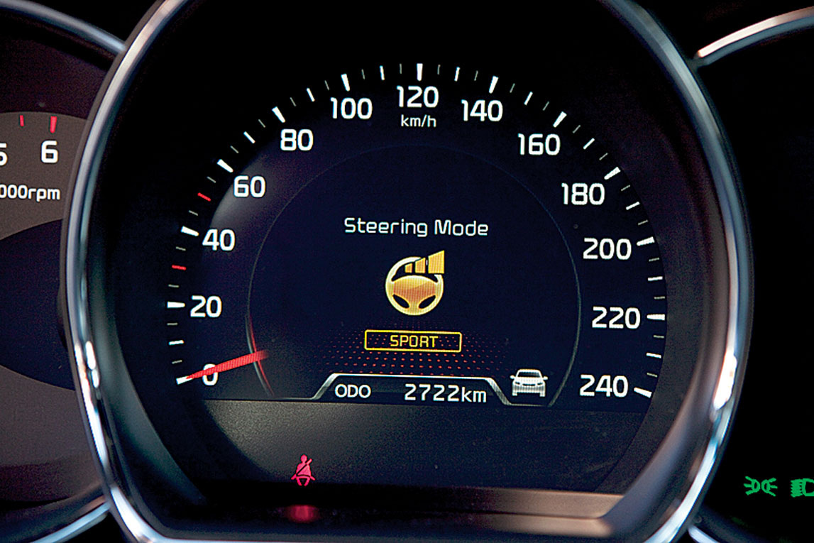 O altă noutate tehnică ce vine oarecum ca un răspuns la criticile aduse primei generații îl reprezintă noul sistem electric de asistare a direcției ce dispune de trei moduri: confort, normal și sport. Aș vrea să pot spune că inginerii Kia au rezolvat problema, dar tot ce au făcut a fost să ofere trei moduri problemei. Orice setare ai alege direcția rămâne foarte distantă, iar în jurul punctului mort aproape că nu reacționează.