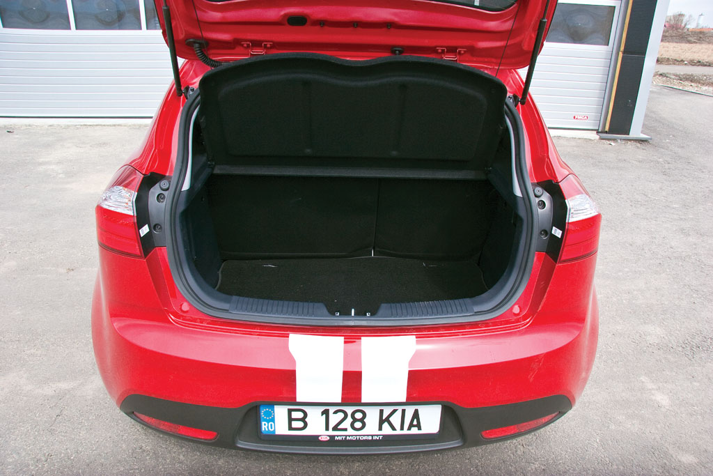 În rest, te bucuri de o ergonomie foarte bună. Am găsit în Rio mai multe spații de depozitare decât în unele modele de clasă medie. Portbagajul este încăpător și are un acces facil, în ciuda pragului de încărcare destul de înalt. Există riscul, în situațiile când încarci cu vârf și îndesat portbagajul, ca atunci când te întinzi să îți murdărești pantalonii de spoiler.