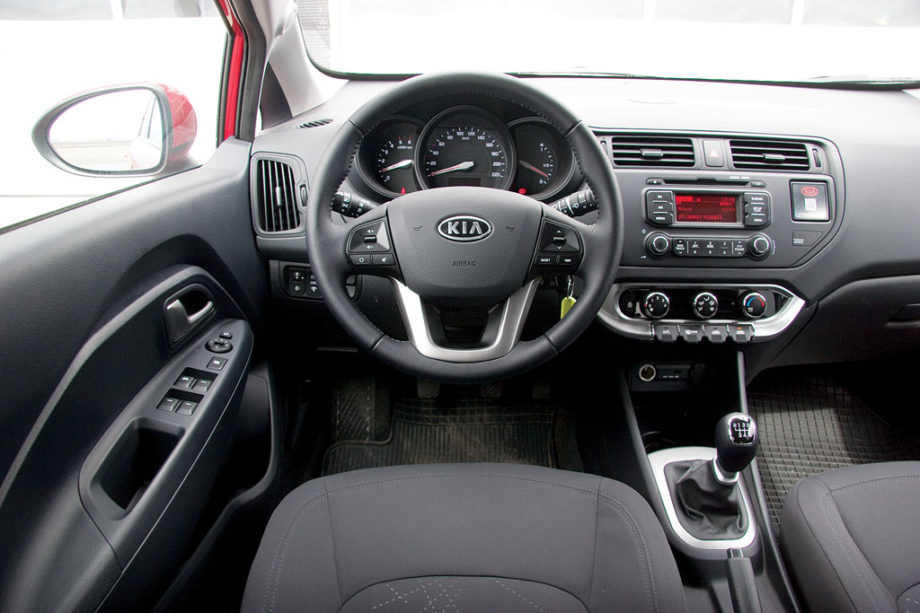 Ajuns la momentul testului eram curios să observ îndeapropape interiorul acestui Rio. Am avut aceeași senzație ca atunci când a avut contact cu cee’d. Materiale bune pentru clasa sa și niște finisări cărora nu le poți aduce reproșuri. Dotările precum oglinzile electrice și radio CD cu mp3 și mufă USB și comenzi audio la volan sunt incluse în varianta standard și sunt binevenite.