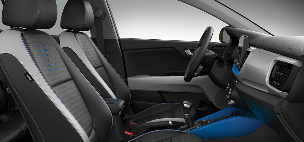 La interior a fost adăugat un sistem de infotainment cu ecran tactil de 8 inch ce suportă Android și Apple CarPlay. Stonic facelift are și o listă completă de sisteme de asistență: Forward Collision-Avoidance Assist (FCA), Lane Keeping Assist System (LKAS), Driver Attention Warning (DAW), Blind-Spot Collision Warning (BCW), Blind-Spot Collision-Avoidance Assist (BCA), Intelligent Speed Limit Assist (ISLA), Smart Cruise Control (SCC) sau Lane Following Assist (LFA).