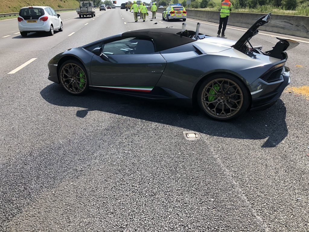 Proprietarul modelului Lamborghini intrase în posesia mașinii doar de 20 de minute și plecase spre casă pe autostrada M1 din Marea Britanie. Din păcate, o defecțiune tehnică l-a forțat să oprească. Un alt șofer, la volanul unei dube, nu a putut evita la timp mașina oprită și a percutat aproape în plin modelul Lamborghini nou-nouț.