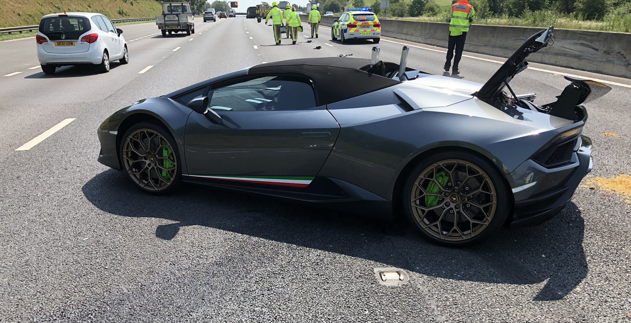 Proprietarul modelului Lamborghini intrase în posesia mașinii doar de 20 de minute și plecase spre casă pe autostrada M1 din Marea Britanie. Din păcate, o defecțiune tehnică l-a forțat să oprească. Un alt șofer, la volanul unei dube, nu a putut evita la timp mașina oprită și a percutat aproape în plin modelul Lamborghini nou-nouț.