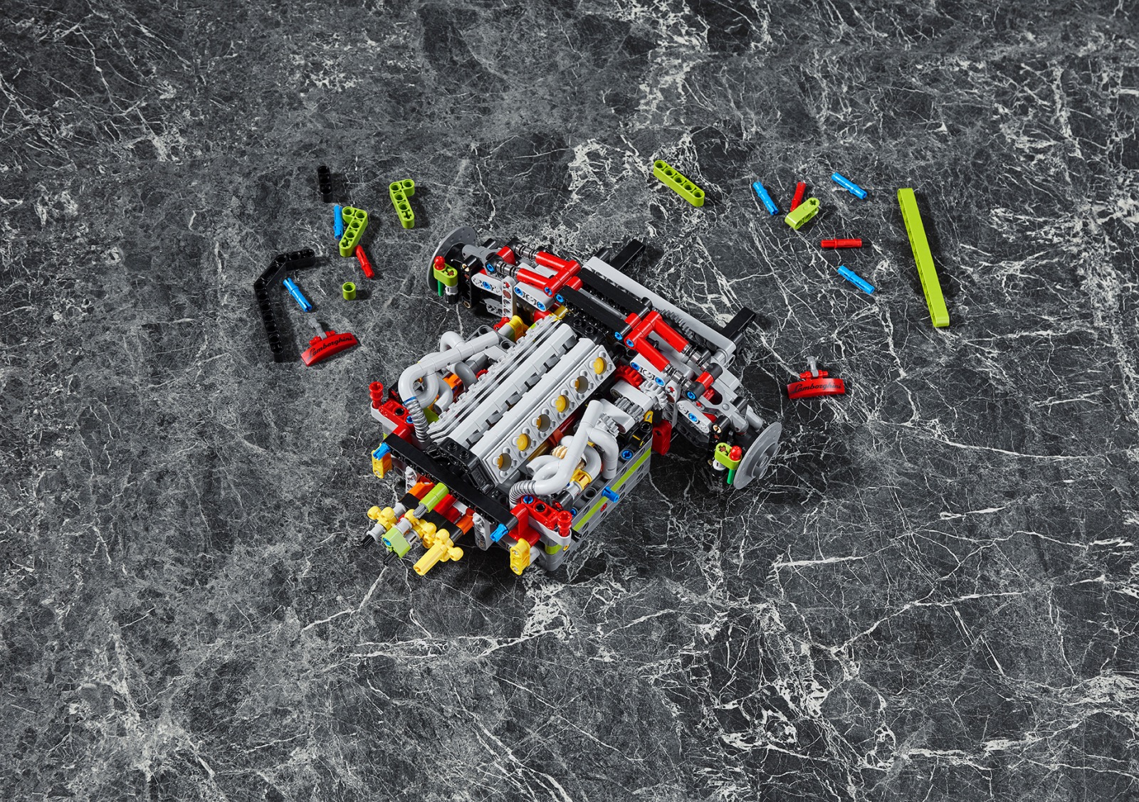 Portierele de tip fluture sunt funcționale, iar spoilerul spate activ se mișcă și pe modelul Lego. Iar jantele aurii sunt o replică perfectă a celor originale. Există chiar și o cutie de viteze funcțională cu opt trepte, iar sub capotă există un set miniatură de bagaje branduite Lamborghini.
