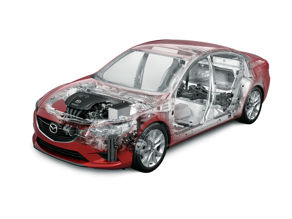 Nu mai este un secret pentru nimeni strategia Mazda de a eficientiza la maxim automobilul convenţional, înainte de a trece la tehnologii alternative. Aşa a apărut conceptul SKYACTIVE, care pleacă de la ideea reducerii maselor şi ajunge până la tehnologii sofisticate, cum ar fi sistemul de regenerare a energiei la frânare (i-ELOOP) sau deja consacratul i-STOP (despre care Mazda declară că este cel mai rapid din lume). SKYACTIVE este aplicat la tot ce are legătură cu automobilul, de la caroserie la trenul de rulare, sau de la motoare la cutiile de viteze.