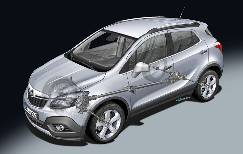 Pentru început Mokka va fi disponibil cu trei motorizări, două pe benzină și un diesel. Cel mai accesibil Mokka va fi propulsat de clasicul aspirat pe benzină de 1.6 l și 115 CP, în timp ce clienții mai pretențioși pot opta fie pentru 1.4 Turbo/140 CP, fie pentru popularul diesel 1.7/130 CP. La diesel tracțiunea integrală este oferită opțional, în timp ce pentru benzină turbo ea este standard (sistemul Start/Stop este standard pentru toate cele trei motorizări). Odată cu tracțiunea integrală clienții de Mokka vor primi nu doar un plus de motricitate cât o setare generală mai fermă a suspensiei. Sistemul de tracțiune integrală și suspensia au fost proiectate pentru stabilitate și manevrabilitate pe suprafețe cu aderență redusă, așa că nu e cazul să te gândești la extreme, adică off-road sau derapaje controlate.