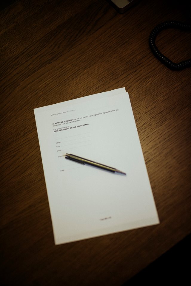 Șeful diviziei de motorsport de la Mercedes, Toto Wolff, a postat pe pagina sa de Facebook o fotografie în care apare contractul încă nesemnat și a dezvăluit informații din interior:
