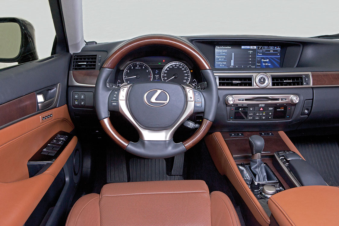 Noua generație GS e încadrată de modele cu pedigree de top, așa că cei de la Lexus știau că nu există treabă făcută cu jumătăți de măsură în această clasă. De la primul contact vizual observi atenția acordată design-ului, produsul final fiind impunător, dar cu puternice tușe sportive, mai ales cu pachetul sport oferit opțional (pe care îl și recomandăm fără a sta pe gânduri). Interiorul a fost gândit din start ca un all inclusive, dacă se poate spune așa, iar într-o configurație înțesată de extra-opțiuni poate fi catalogat drept science fiction. Selecția de materiale de cea mai bună calitate s-a făcut cu rigurozitatea tipică locuitorilor din țara soarelui răsare, pielea folosită, de exemplu, fiind capabilă să dea peste nas chiar și producătorilor de mobilier de lux. Analizând concurența, trebuie să precizăm că BMW, de exemplu, nu oferă așa ceva decât prin programul Individual, cu costurile suplimentare aferente exclusivității.