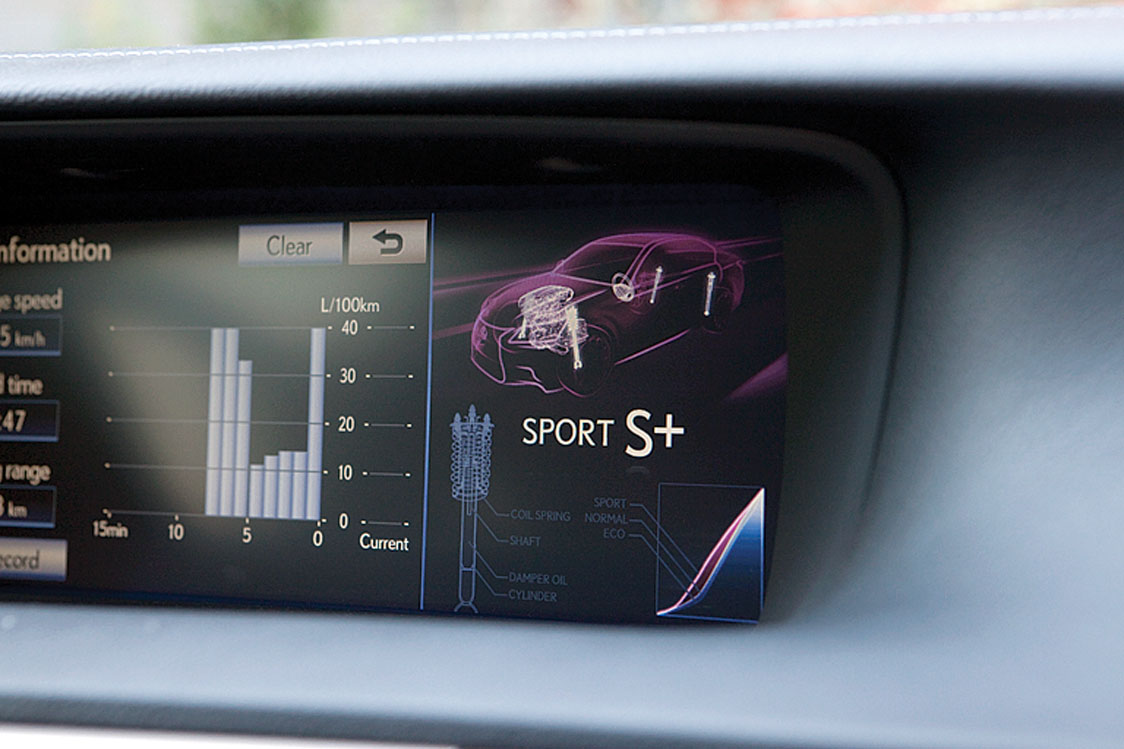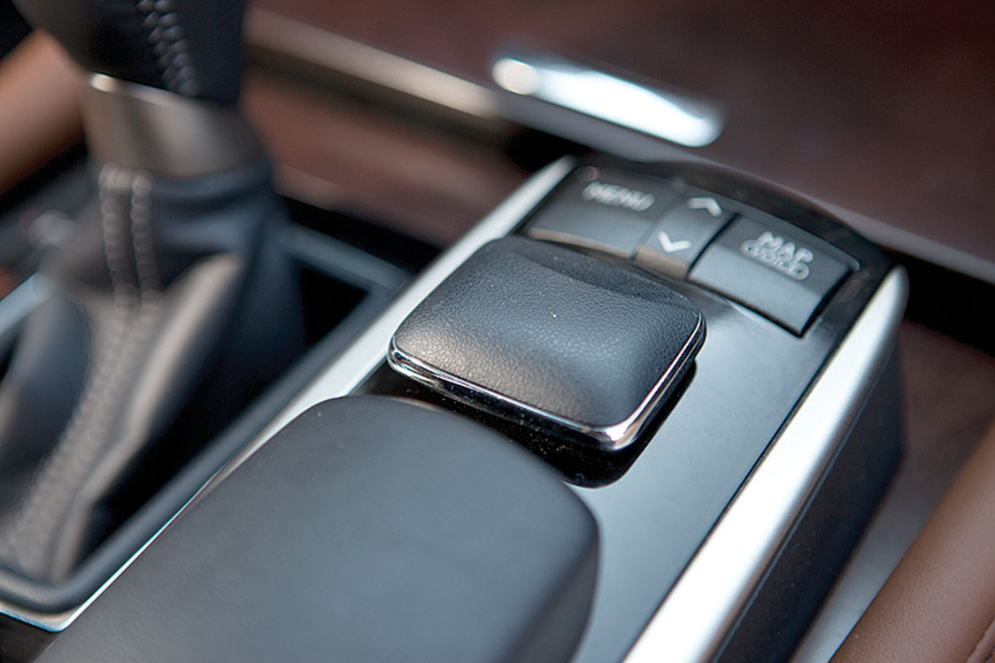 Dacă am amintit de piele, să spunem că ea îmbracă fotoliile față, pentru că la gradul de confort oferit, numai despre scaune nu poate fi vorba. Ca o atenție excesivă îndreptată spre client, să spunem că există nu mai puțin de 18 reglaje ce pot fi aplicate acestora, fiind realmente imposibil să nu reușești să configurezi o poziție ideală la bord. Care bord te întâmpină cu o sumedenie de comenzi, și cu un ecran de-a dreptul gigantic. E ca și cum, în timpul procesului de proiectare, cineva a montat ecranul unui laptop în glumă, pentru a-l configura high tech, iar artificiul a prins. Sistemul multimedia este complex, beneficiind de o grafică foarte interesantă, dar comanda acestuia, printr-un joystick „inteligent“ (derivat din touchpad-ul laptop-urilor) necesită o perioadă de acomodare.