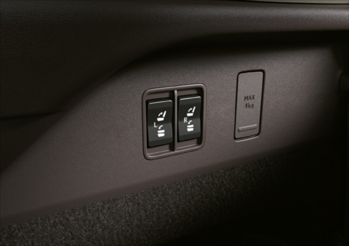 Scaunele se pot rabata la simpla atingere unui buton, confirmând firea practică a SUV-ului nipon. Scaunele prezintă finisaje de înaltă calitate, respectând liniile întregii cabine cu atmosferă de lounge și oferind confortul necesar chiar și pe durata călătoriilor pe distanțe lungi.