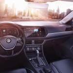Cabina modelului primește materiale de calitate, lumină ambientală în 10 culori diferite și elemente de design trapezoidale, cum ar fi noile ventilații. Volkswagen a montat la bord și un ecran mai mare, ușor înclinat către șofer și amplasat mai sus ca înainte. Nemții nu au comunicat însă dimensiunile noului display, care își face loc în interiorul digitalizat al noului Jetta.