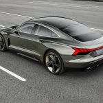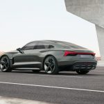Puterea este confirmată de un look agresiv, dinamic, care are șanse mari să ajungă fără alterări majore și la versiunea de serie, care va intra în producție în 2020. Grila uriașă hexagonală, farurile Matrix LED și bara cu linii sportive alcătuiesc o parte frontală îndrăzneață. E-Tron GT aleargă pe jante de 22 de inci cu anvelope de 285/30, iar mânerele sunt ascunse în portiere. Acestea din urmă au șanse mici să se regăsească și la versiunea de serie.