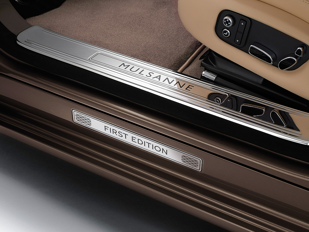 First Edition nu e doar o altă ediție specială a modelului de lux britanic. El reprezintă esența luxului suprem pe care Bentley îl poate oferi, pornind de la modelul Mulsanne. Astfel, englezii selectează numai caracteristicile speciale ale variantelor actuale ale modelului, înglobându-le într-o ediție unică, asamblată manual la uzina de la Crewe, în numai 50 de exemplare. Performanțele dinamice ale lui Mulsanne Speed se îngemănează cu spațiul interior uriaș caracteristic lui Mulsanne Extended Wheelbase pentru a oferi maximum în toate privințele.