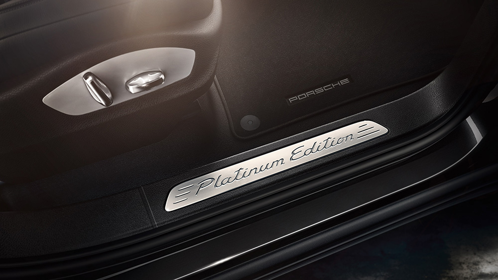 Culorile oferite standard sunt negru și alb, ambele nemetalizate, dar ediția specială beneficiază de un pachet exterior cu elemente lucioase. Firește, opțional pot fi comandate și culori metalizate. Pragurile sunt garnisite cu plăcuțe Platinum Edition iluminate. Nici sistemul infotainment nu este comun, ci beneficiază de pachetul Porsche Communication Management, ce include sistem de navigație, conectivitate Connect Plus și sistem de sunet cu boxe BOSE.