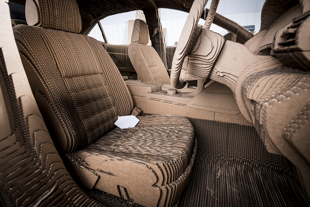 Mașina origami are un interior complet, uși funcționale, faruri și roți care se învârtesc și, datorită unui motor electric montat pe cadrul său din aluminiu și oțel, poate fi chiar și condusă. Din punct de vedere al mărimii și al complexității, proiectul a fost unul fără precedent pentru LaserCut Works și Scales and Models, companii de specialitate britanice cu o experiență extinsă în designul și crearea de prototipuri, modele arhitecturale și operațiuni la comandă.