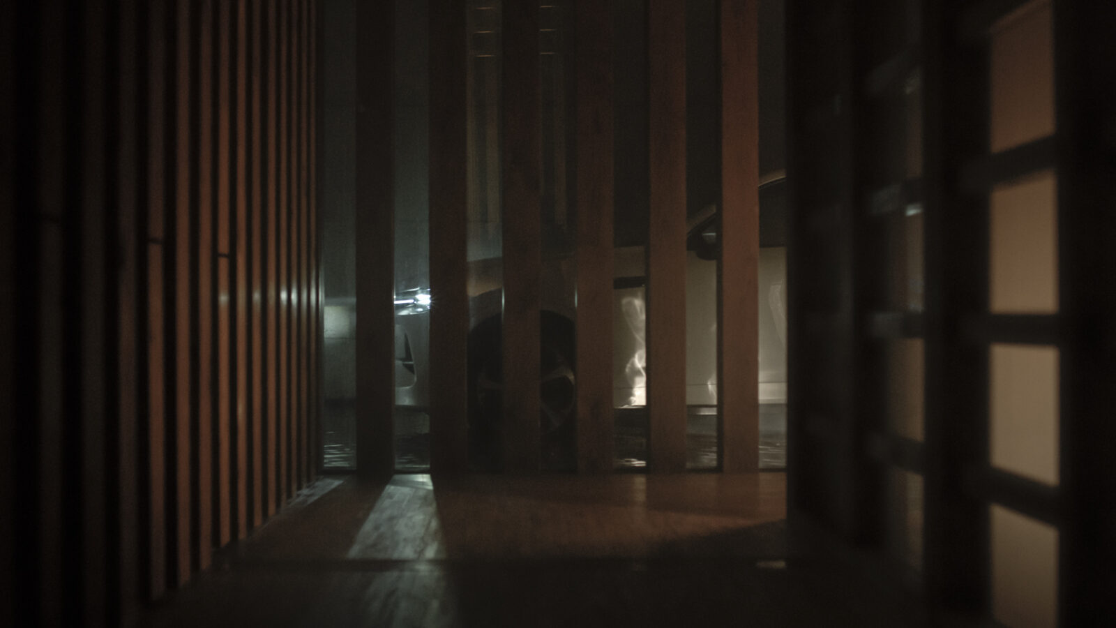 Din profil, un flux de lumină coboară de la partea din spate a plafonului către aripă. Aceasta simulează tușa unei pensule de caligrafie japoneză.