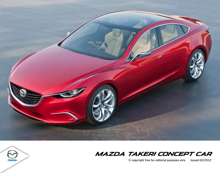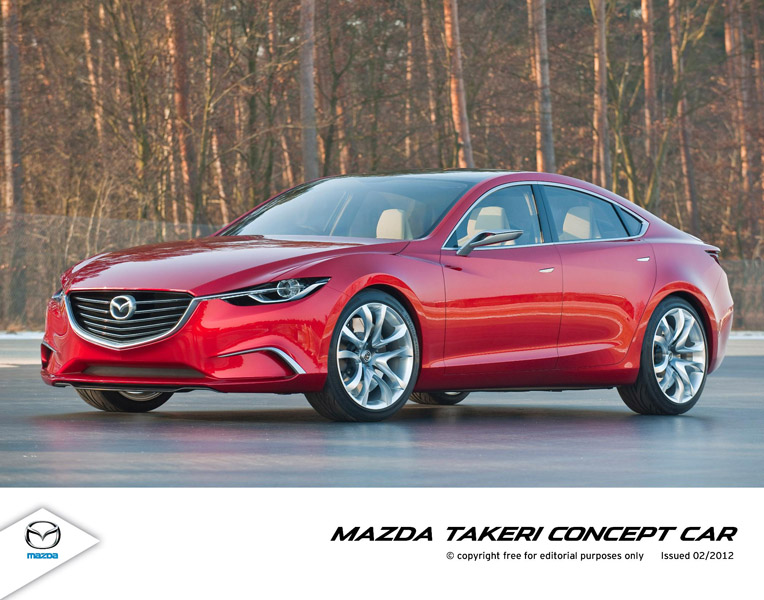Takeri dezvăluie direcția în care se îndreaptă noua generație sedan din clasa mare, urmând îndeaproape conceptul Shinari prezentat în 2010, acel coupe cu patru uși ce a reprezentat prima „încarnare” a temei KODO. Mazda a explorat pentru mulți ani variate concepte ale mișcării în natură pentru a se inspira în crearea unui design unic pentru mașinile sale. Mișcarea instantanee a animalelor – ce debordează de energie și emoție – a inspirat echipa de desing Mazda și a stat la baza temei KODO, dezvoltată sub îndrumarea lui Ikuo Maeda.