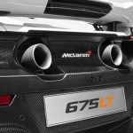 La exterior, 675 LT este ușor de recunoscut grație extensiilor din fibră de carbon aplicate spoilerului faţă şi pragurilor laterale. McLaren oferă cinci culori exterioare pentru caroserie: Chicane Grey, Delta Red, Silica White, Napier Green şi Heritage Mclaren Orange.