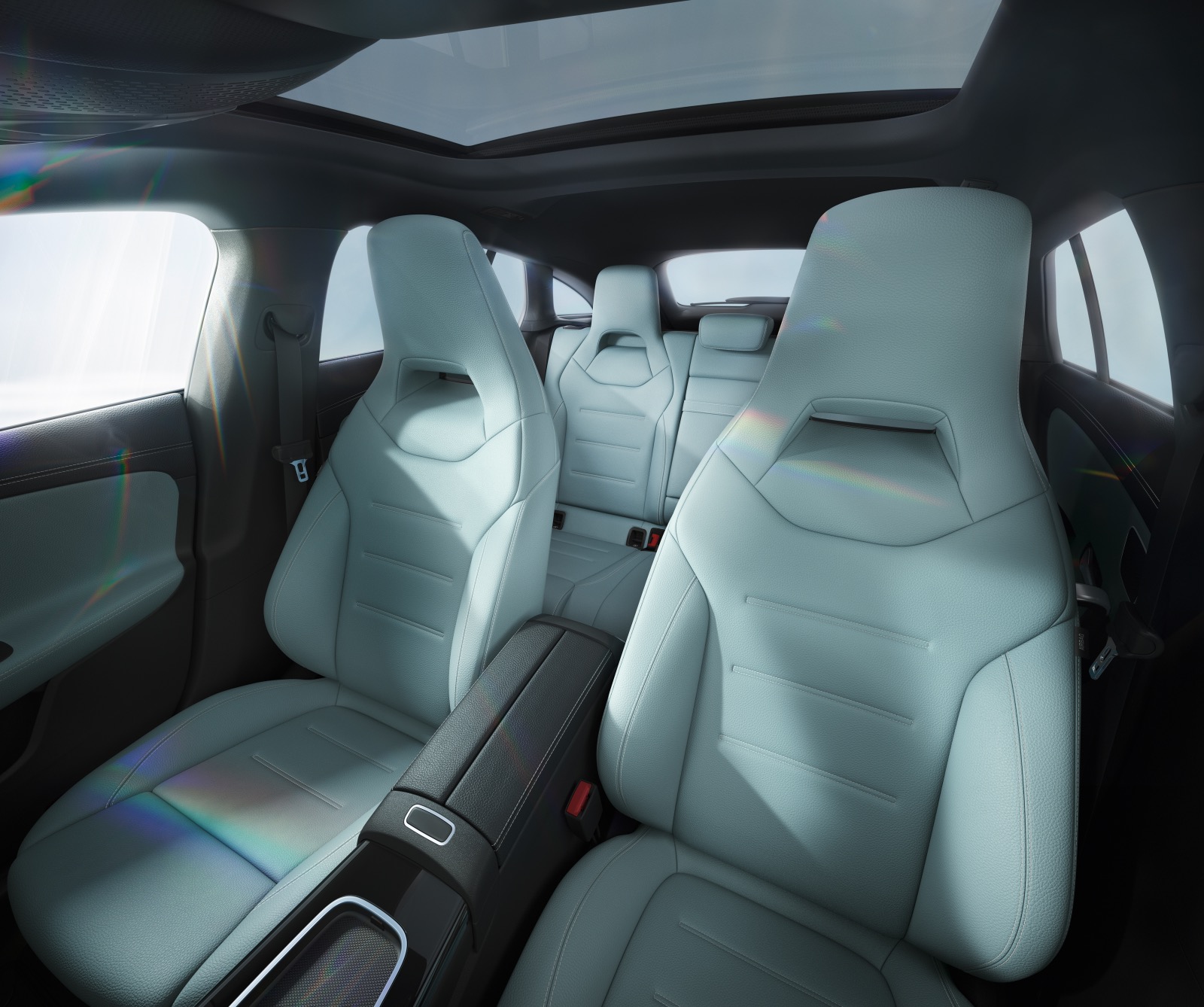 La interior, modelul CLA facelift primește în standard două ecrane de 7 și 10,25 inchi, iar scaunele sunt îmbrăcate în piele sintetică Artico. Pentru echiparea de top AMG Line, tapițeria Artico este combinată cu microfibră Microcut. Opțional, se pot alege două ecrane de 10,25 inchi la interior. În echiparea de bază, CLA facelift oferă fază lungă automată, cameră de marșarier și noul sistem multimedia MBUX.