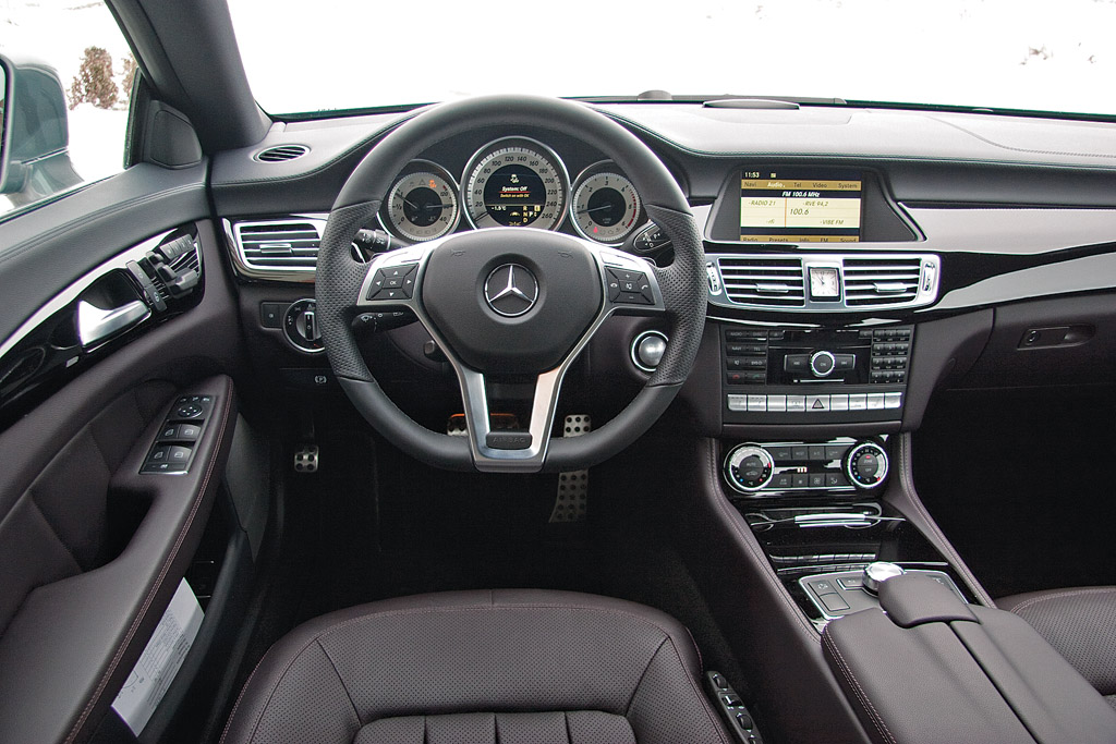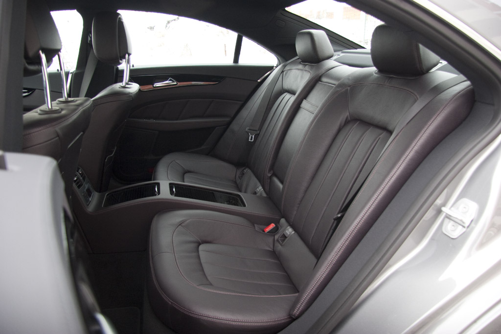 Îmbinând rafinamentul cu sportivitatea, CLS este o limuzină în toată puterea cuvântului. Cele două scaune spate, nu pot fi numite banchetă, oferă mai mult suport lateral decât scaunele unui hot hatch, dar mărimea lor își spune cuvântul în materie de confort.