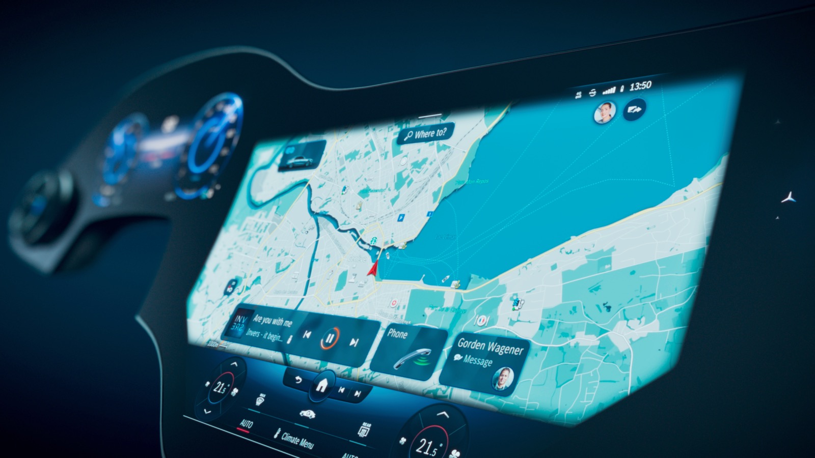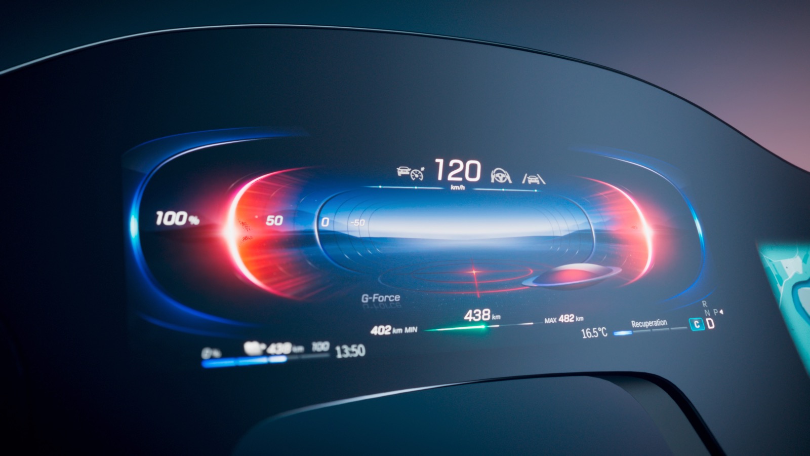 Display-ul curbat are o lungime de 141 cm și va fi beneficia de inteligență artificială. Ecranul se va întinde practic pe toată lungimea bordului și va putea fi accesat atât de cel de la volan cât și de pasagerul din dreapta. Sitemul integrază practic trei ecrane diferite creând senzația unui imens ecran.