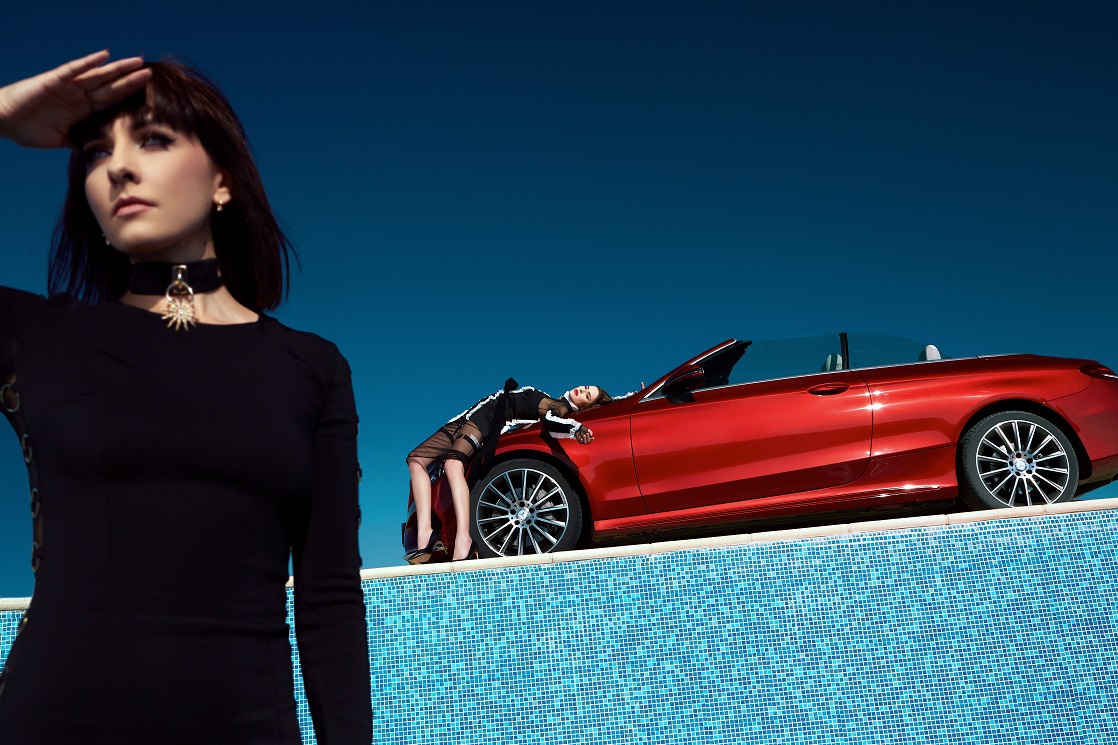 În cadrul pictorialului, designerul Andreea Bădală și fotomodelul Anca Tiribeja au fost surprinse în ipostaze extravagante alături de Mercedes-Benz CLA şi de Mercedes-Benz Clasa C Cabriolet.
