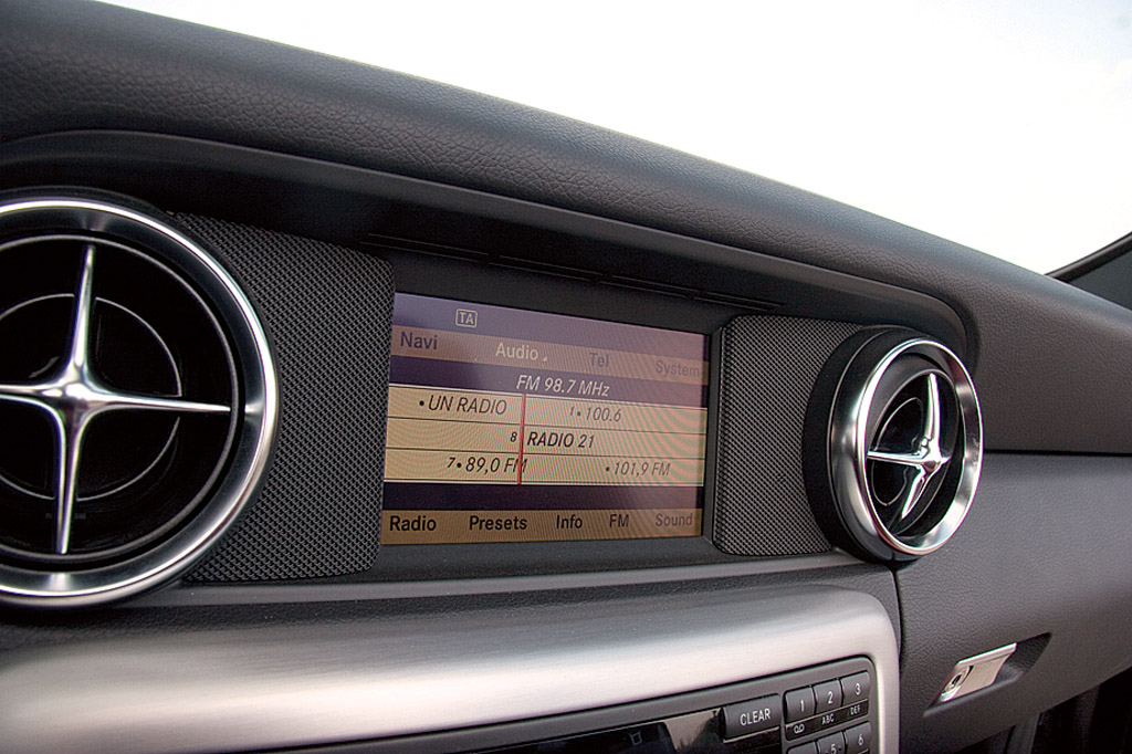 Mai bine decât în SLK-ul în care acum fix doi ani îmi făceam cu greu loc. Creșterea în lățime se simte în special la nivelul umerilor, dar asta nu înseamnă că cei care au peste 1.85 nu vor da ocazional coate fețelor de ușă sau consolei centrale. Partea bună este că te lovești de materiale din ce în cel mai bune, de la plasticul moale de pe bord până la inserțiile din aluminiu, crom sau alte materiale nobile.