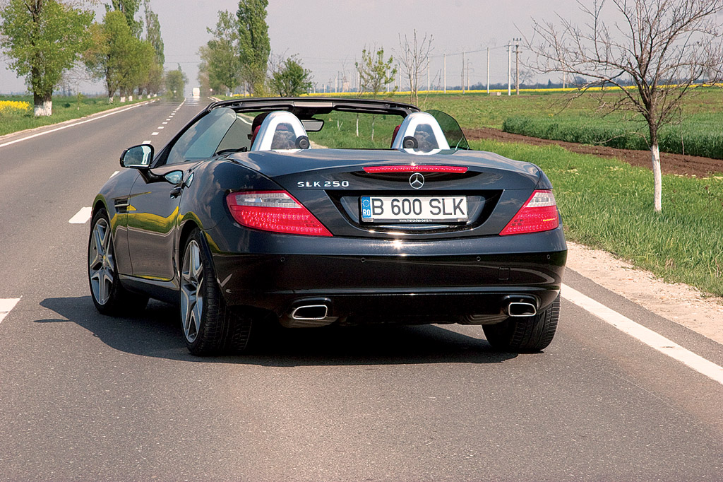 Dacă uiți de faptul că nu ai o banchetă în spate, un SLK se simte aproape la fel ca o Clasa C cu jante pe 18“, filtrează bine denivelările și în modul ECO trece pe nesimțite prin cele șapte trepte al tran-smisiei. Aici spun eu că ar trebui să insiste Mercedes-Benz și mai puțin pe latura dinamică, unde Z4 rămâne pentru moment o soluție preferată.