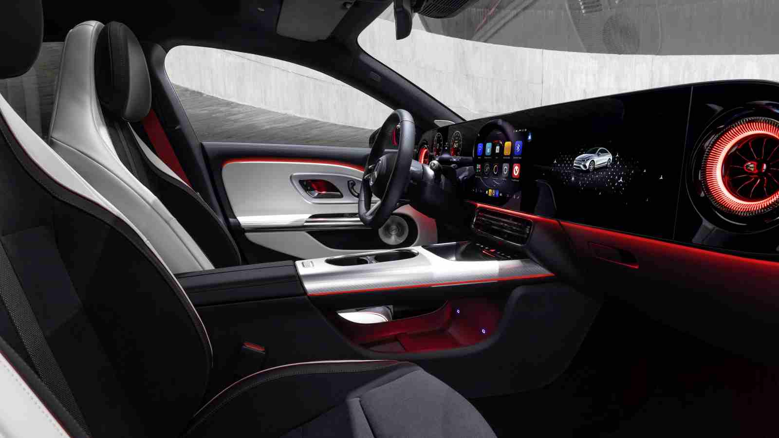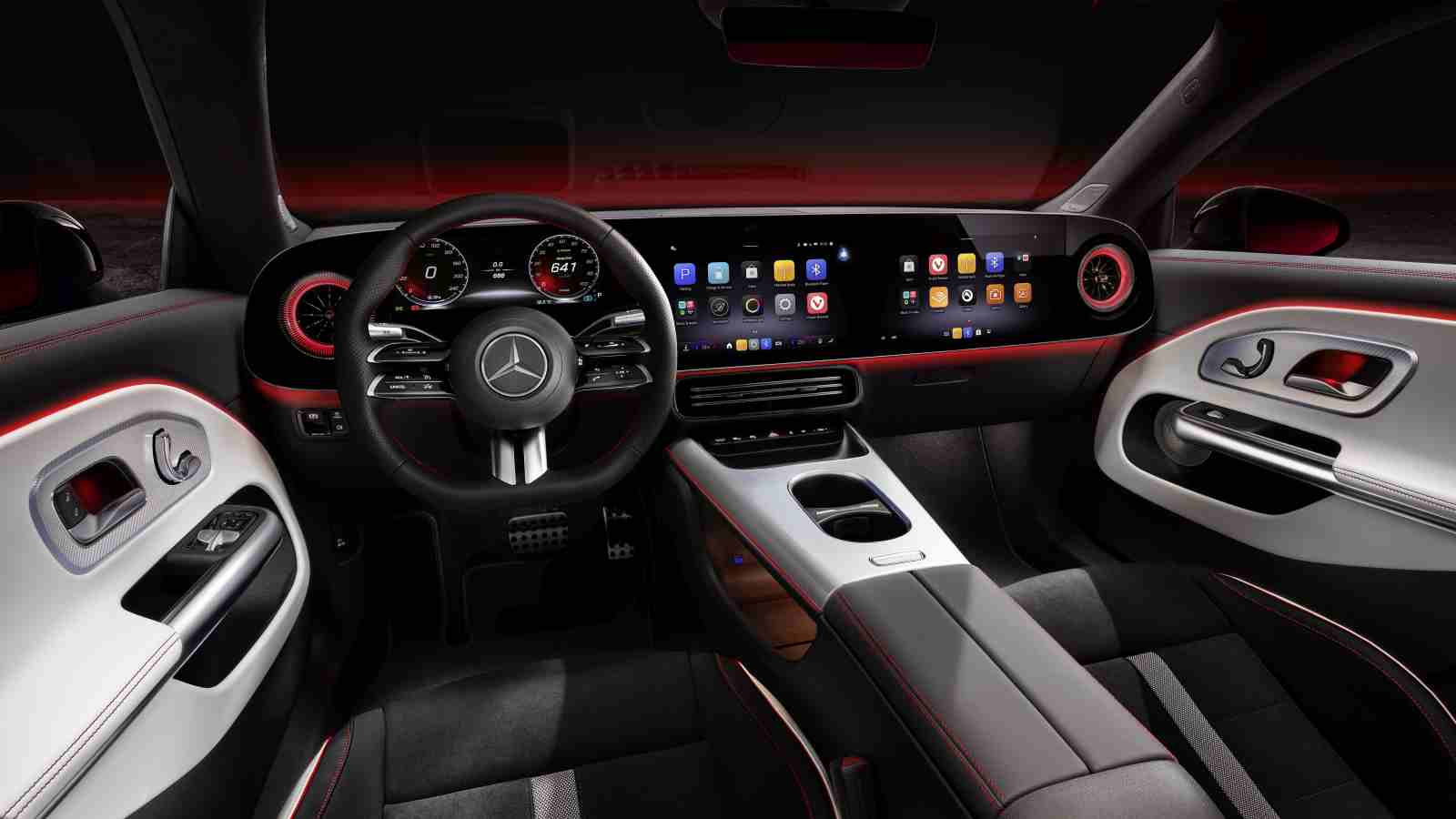 Printre cele mai importante noutăți se numără sistemul de operare MB.OS, cu actualizări over-the-air, și cea de-a patra generație a sistemului de infotainment MBUX. Acesta din urmă integrează inteligența artificială de la Microsoft (căutări web prin Bing și procesarea răspunsurilor cu ChatGPT 4) și Google, Gemini având grijă de navigație. Rămâne, într-o formă evoluată, pagina de pornire editabilă Zero Layer, care permite afișarea celor mai importante informații, sugestii și, în premieră, a celor mai recente aplicații utilizate. Își face debutul asistentul virtual, capabil să susțină dialoguri avansate și schimbări de conversație datorită memoriei pe termen scurt. Sunt trei ecrane sub același geam, pentru instrumentele digitale de bord, pentru sistemul multimedia și pentru pasager, acesta din urmă având la dispoziție și o bibliotecă de jocuri video.