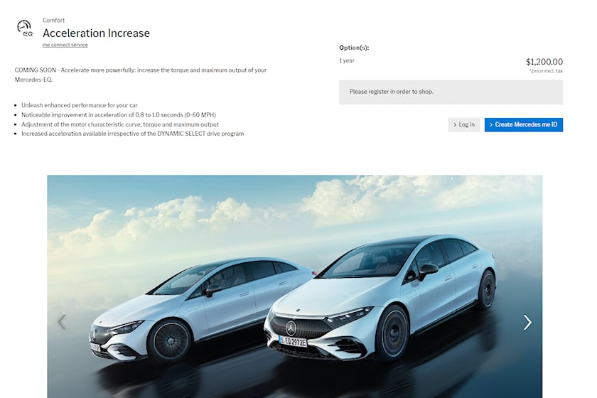 Se întâmplă în Statele Unite. Pentru a beneficia de toată puterea dezvoltată de motoarele electrice, proprietarii modelelor Mercedes-EQ vor trebui să achite o taxă anuală.