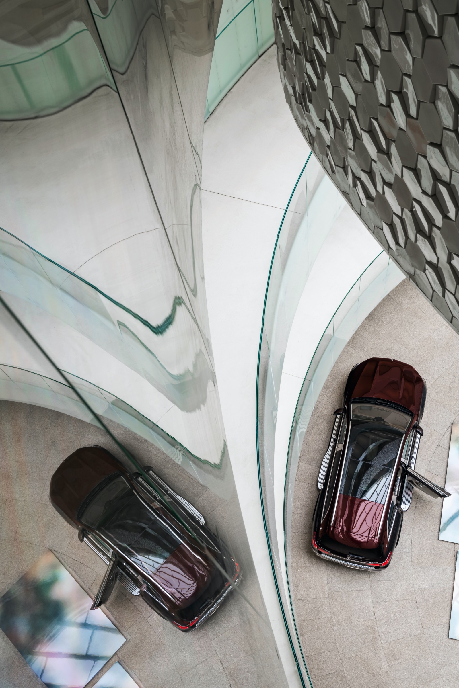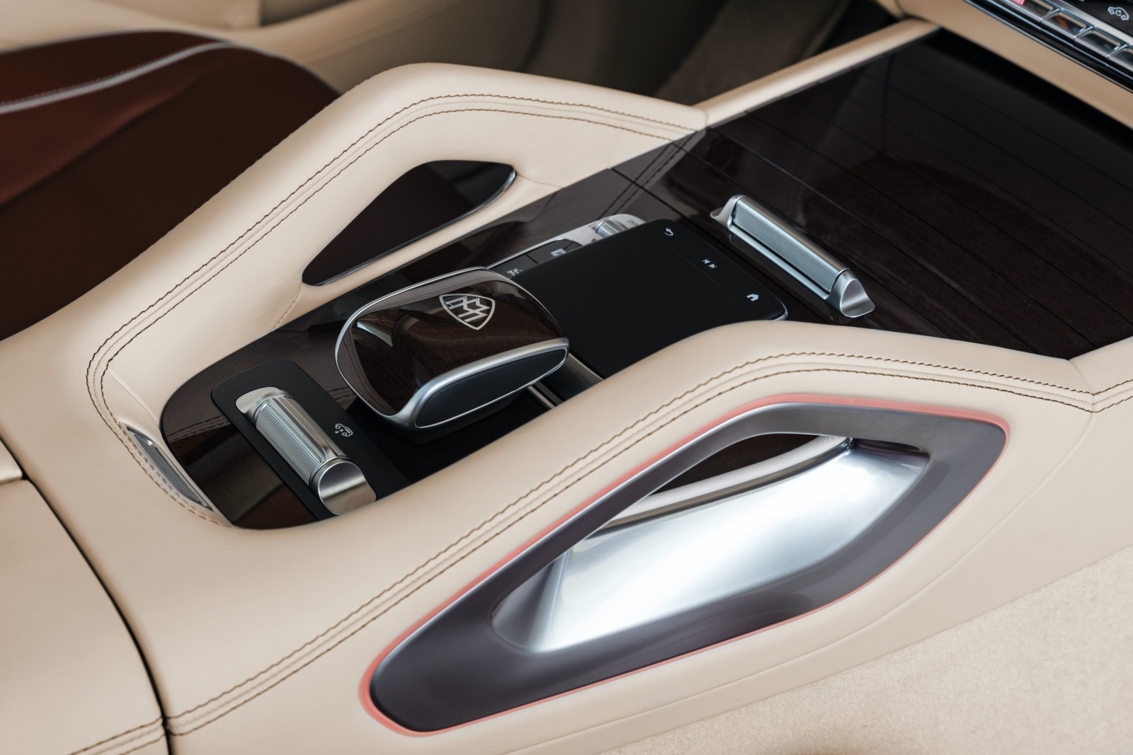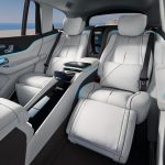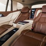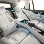 Scaunele se pot rabata și au inclusiv sprijin pentru picioare, iar pasagerii din spate au la dispoziție un spațiu răcit pentru băuturi, tabletă pentru sistemul infotainment și suport pentru telefonul mobil.