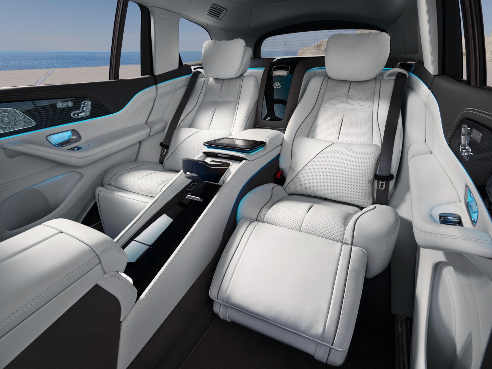 Scaunele din spate sunt încălzite, ventilate și au funcție de masaj, iar comunicatul oficial spune că a fost inclus chiar și un parfum special pentru interiorul modelului Maybach GLS.