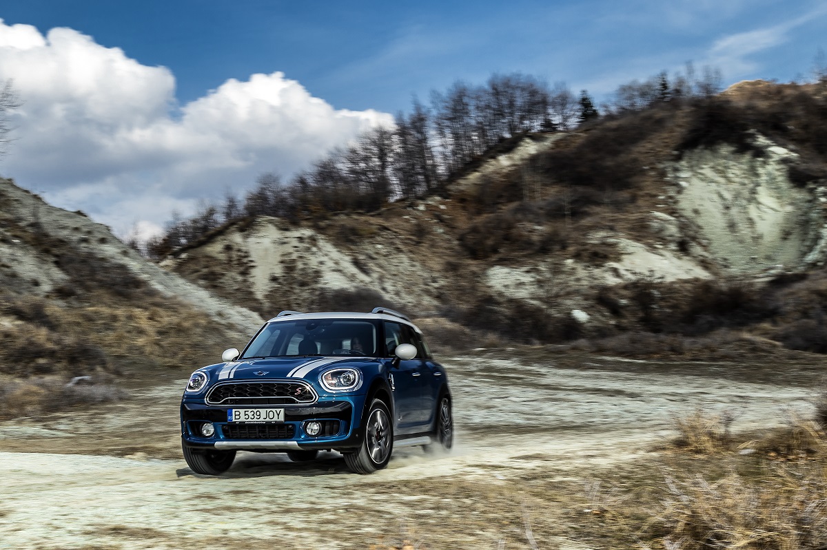 La drum, s-ar putea ca MINI să ți se pară un pic zgomotos, compartimentul motorului nu este perfect antifonat. Dar aici vorbim de o mașină de aventură, nu de o balerină de la Operă, așa că nu te poți aștepta ca mașinuța ta să meargă pe poante. Tracțiunea integrală ALL4 și garda la sol de 16.5 cm îl transformă într-un aventurier încălțat în bocanci, gata de o incursiune în off-road. Pentru teren accidentat, există și funcția Cliff Champ, care îți cronometrează performanțele.