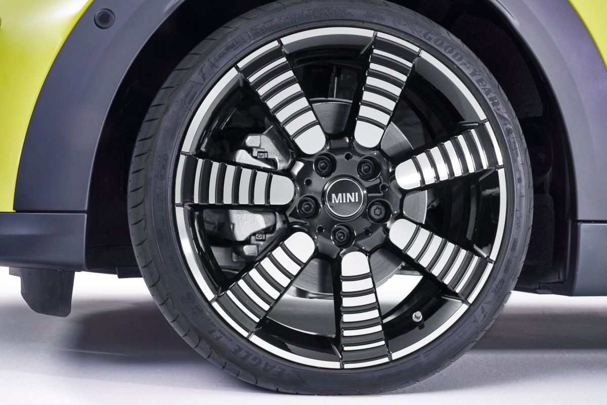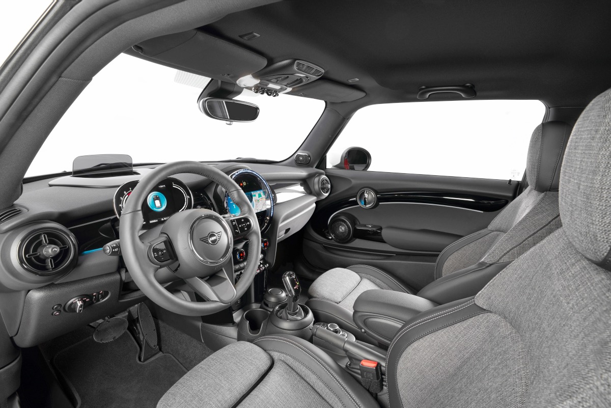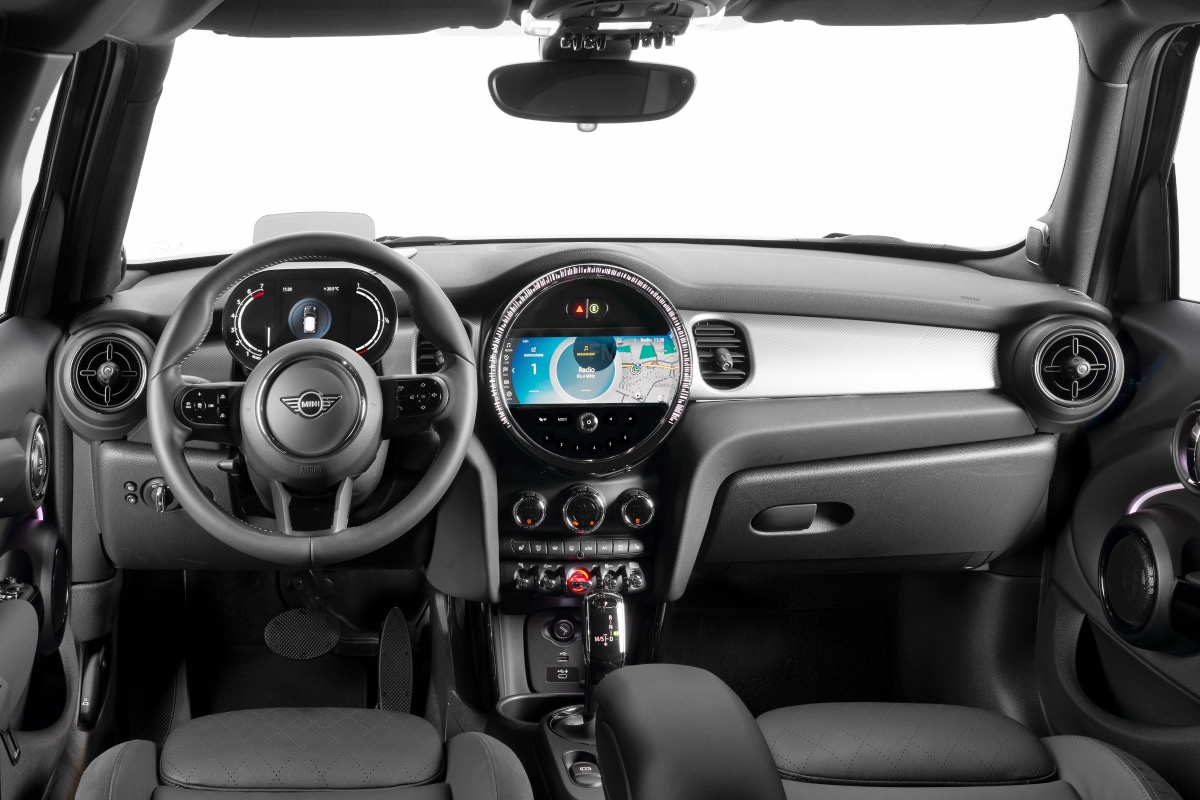 La interior, Mini primește volan reproiectat ce poate fi încălzit, ca opțiune, display pentru instrumentele de bord, ecran central de 8.8 inch, scaune sport în culoarea Light Checkered și frână de parcare electrică.