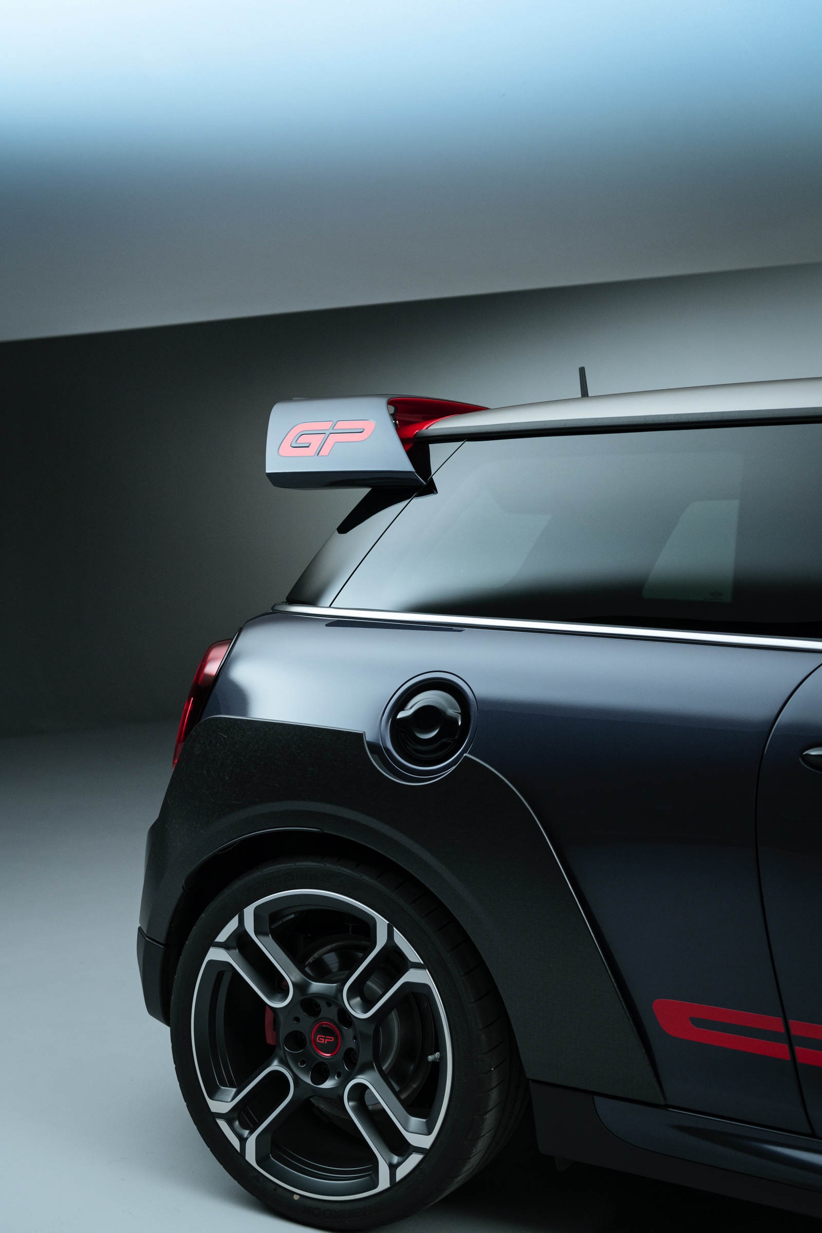 La nivel optic, noul Mini JCW GP se remarcă prin elementele aerodinamice: prize de aer proeminente, aripi din fibră de carbon (CFRP) și un eleron spate de dimensiuni generoase. O singură culoare este disponibilă pentru noul model: Racing Grey.