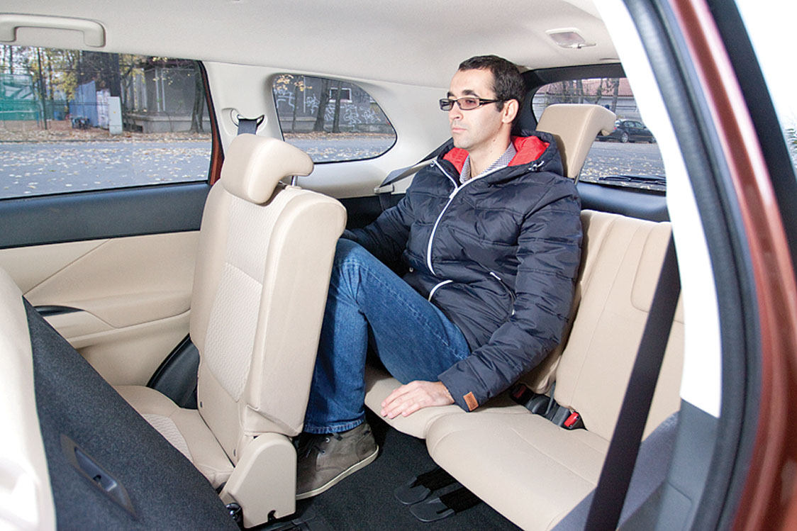 Aici apare și prima problemă pentru noul model: prezența lui în showroom umăr la umăr cu generația precedentă nu îi aduce prea multe beneficii, cel puțin nu la prima vedere. Acum cinci ani, atunci când Mitsubishi a anunțat ultima lor schimbare de macaz în materie de design se vorbea mult despre o abordare mai agresivă și despre elemente grafice ca grila „jet figher“. Vechiul Outlander le are, în timp ce noul model le-a făcut uitate în favoarea unui design bening prin excelență. Evoluția devine evidentă odată ce deschizi portiera și observi că vechea planșă de bord, caracterizată prin plastice dure închise la culoare, a fost scoasă la pensie. În locul ei avem materiale moi, o abordare cromatică mai plăcută și o consolă centrală orientată spre șofer.