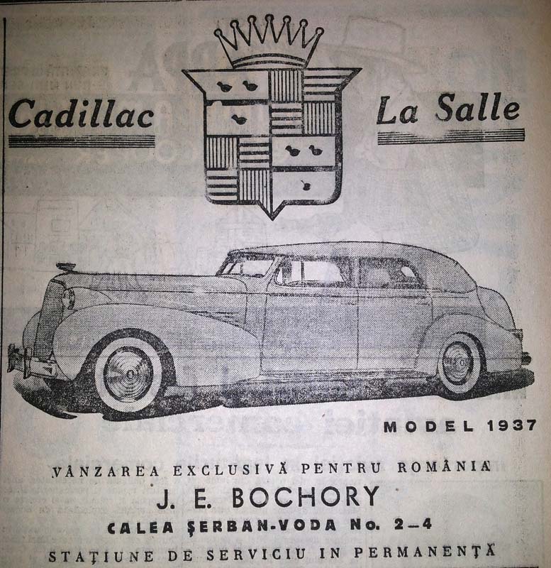 În cazul mărcilor GM premium, Cadillac / LaSalle, reclama este directă, fără sloganuri sau comentarii, excepție fiind precizarea că service-ul distribuitorului funcționează permanent. Foarte interesant este faptul că GM nu acorda în perioada respectivă în România distribuția tuturor mărcilor din grup uneia sau mai multor firme: pentru Cadillac și LaSalle distribuția în România fiind încredințată exclusiv firmei J.E. Bochory.