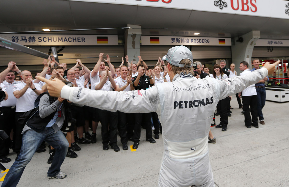 Dupa ce a obtinut cea mai buna pozitie pe grila de start cu un avans de o jumatate de secunda, Rosberg a castigat prima cursa de Formula 1 din cariera si a adus prima victorie pentru Mercedes, dupa cea din Marele Premiu al Italiei in 1955, folosind o strategie cu doua opriri la boxe. Ritmul impus de Rosberg la inceput a fost suficient pentru a-si pastra pozitia de lider dupa prima oprire la boxe, dupa care a reusit sa controleze perfect cursa cu pneurile de compozitie medium.