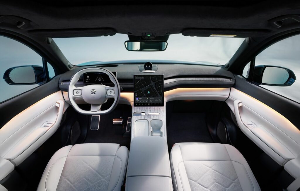 La interior avem instrumente digitale și un ecran de 12.8 inchi amplasat vertical pe consola centrală. Sistemul include iluminare ambientală cu 256 de culori și scaune față încălzite, ventilate și cu funcție de masaj.