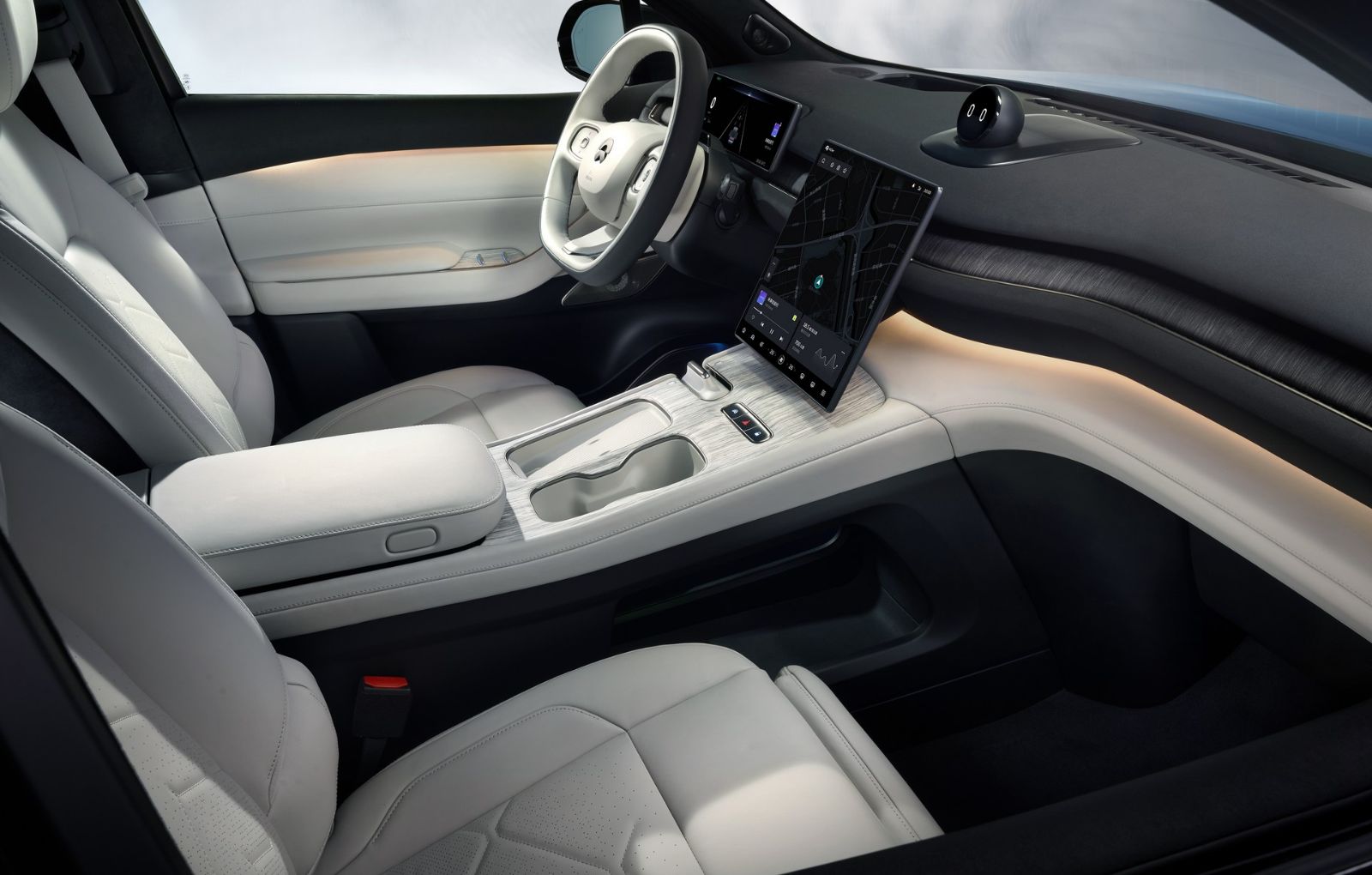 La interior avem instrumente digitale și un ecran de 12.8 inchi amplasat vertical pe consola centrală. Sistemul include iluminare ambientală cu 256 de culori și scaune față încălzite, ventilate și cu funcție de masaj.
