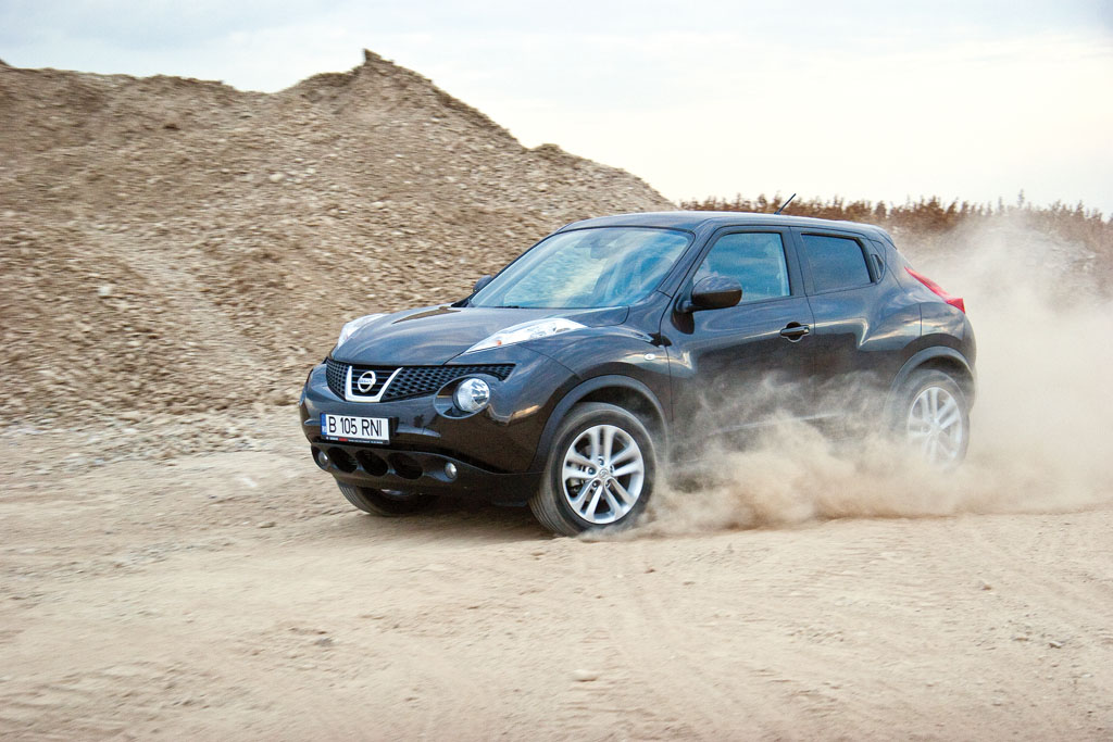 Ținuta de drum este impresionantă, judecând după silueta lui Juke. Deși înălțimea nu l-ar recomanda ca pe un vehicul foarte agil pe viraje, lucrurile stau exact pe dos. Am verificat aceste considerente pe traseul Predeal-Brașov, via Pârâul Rece și Râșnov, și pot spune fără rețineri că sistemul de suspensie împreună cu trenul de rulare permit micuțului Juke să pătreze permanent un contact ferm cu solul, indiferent de viteza dezvoltată pe viraje.