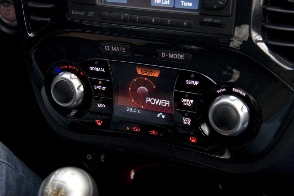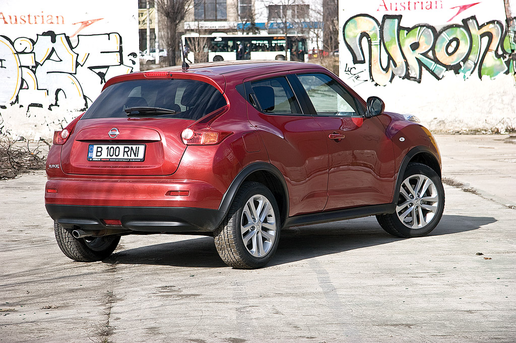Din spatele volanului Juke îți lasă impresia că ar fi putut fi un hot hatch de încredere, cu o suspensie destul de rigidă, o direcție bună și reacții cât se poate de previzibile. Sigur că versiunea aspirată de 1.6 l și 117 CP are limitările sale, dar modul sport și cutia etajată scurt reușesc să ascundă o mare parte din ele. Cel puțin în oraș propulsorul se turează plăcut și în combinație cu masa mică a lui Juke oferă reprize bune.