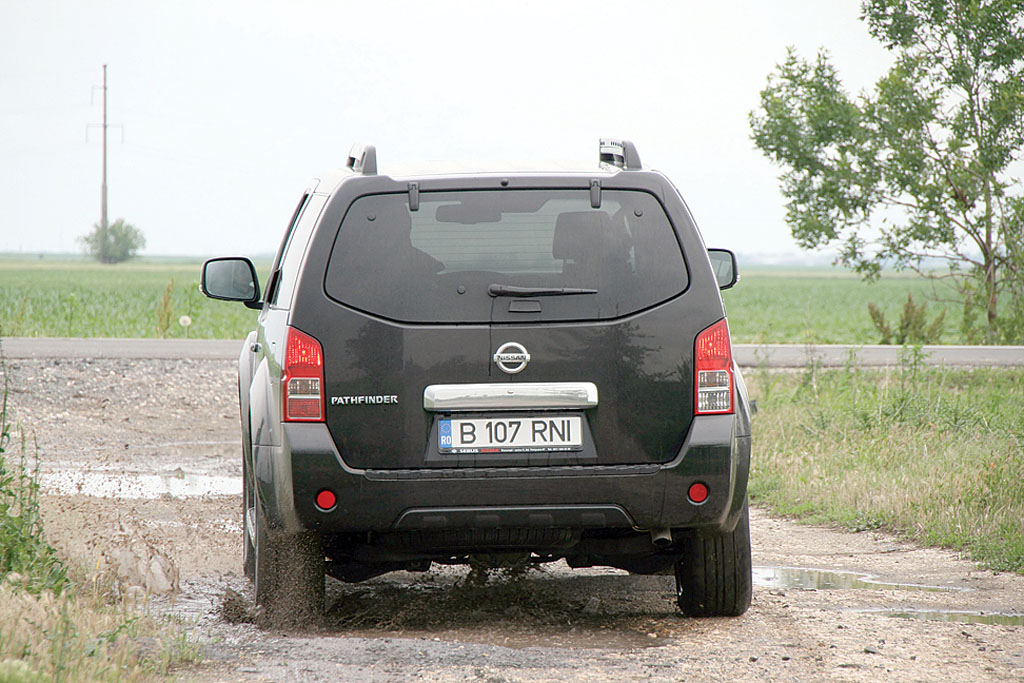 În teren lucrurile stau mulţumitor dacă luăm în calcul gabaritul maşinii şi al faptului că o maşină de test are întotdeauna anvelope neadecvate pentru aceste scopuri, respectiv de asfalt. Plusurile lui Pathfinder la acest capitol vin tot de sub capotă, de unde vine un cuplu imens, dar şi al construcţiei maşinii din care nu lipsesc unele soluţii tehnice „old school“, cum ar fi şasiul separat de caroserie şi tracţiunea integrală nepermanentă.