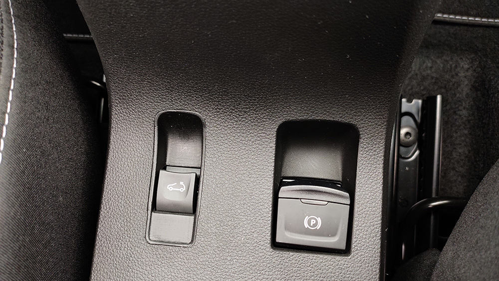 Spațiile de depozitare sunt în progres: 21 de litri sunt gata să primească mărunțișuri în habitaclu, cu 2,5 l peste actuala generație. În fața cotierei se află butonul pentru frâna de staționare (disponibil opțional, standard fiind frână de mână cu manetă), iar lângă el se află (atipic) butonul de comandă al trapei electrice.