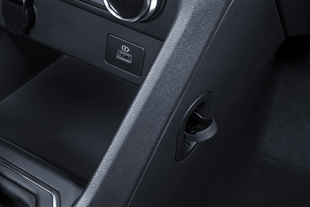 Dacă optezi pentru unul dintre cele două sisteme superioare, primești suport pentru smartphone care se învârte (portrait / landscape) și care poate fi scos la nevoie. În spatele lui, standard, mașina vine cu mufă USB la care poți conecta telefonul cu un cablu scurt, ca să nu te mai agăți de ”mațe” prin mașină. Mai există și o a doua mufă USB, disponibilă opțional, în zona inferioară a consolei centrale, ce poate fi folosită pentru încărcarea telefonului.
