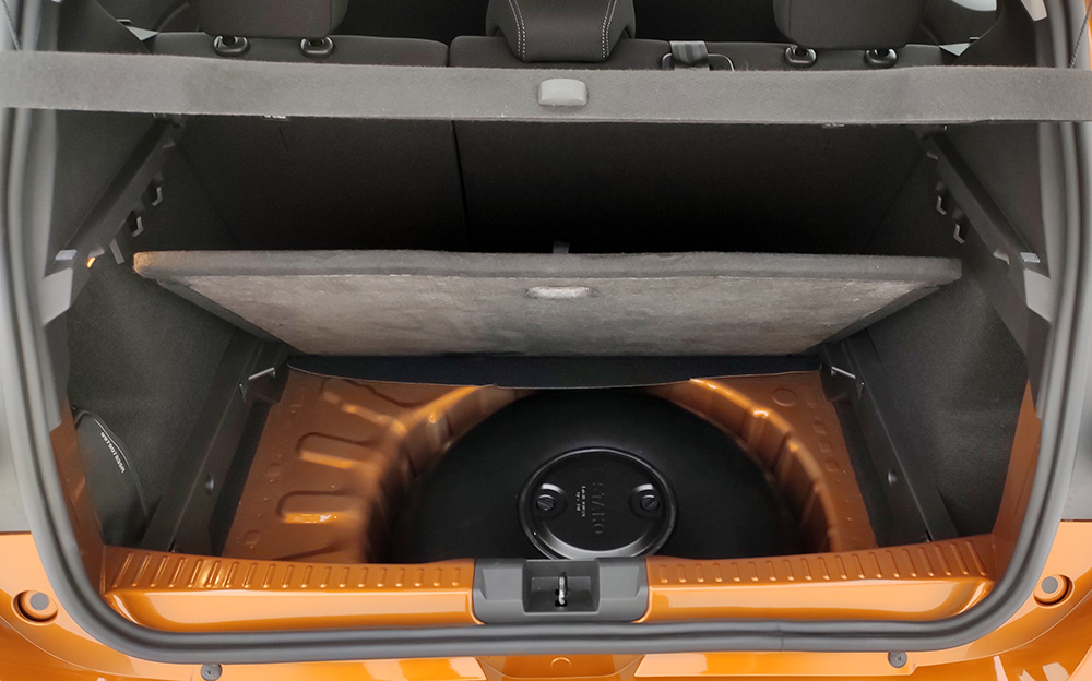 Sandero nu are organizator, dar vine cu patru cârlige de agățat pungile de cumpărături. Cât despre Stepway – aici situația este spectaculoasă de-a dreptul: podeaua amovibilă se poate monta fie pe treapta de jos, favorizând volumul, fie pe cea de sus, formând o duprafață plană la rabatarea banchetei, fie oblic, înclinată spre față, pentru a evita deplasarea obiectelor prin portbagaj. Pe hayon sunt două mânere de care poți să tragi pentru a-l închide: și dreptacii și stângacii vor fi fericiți!