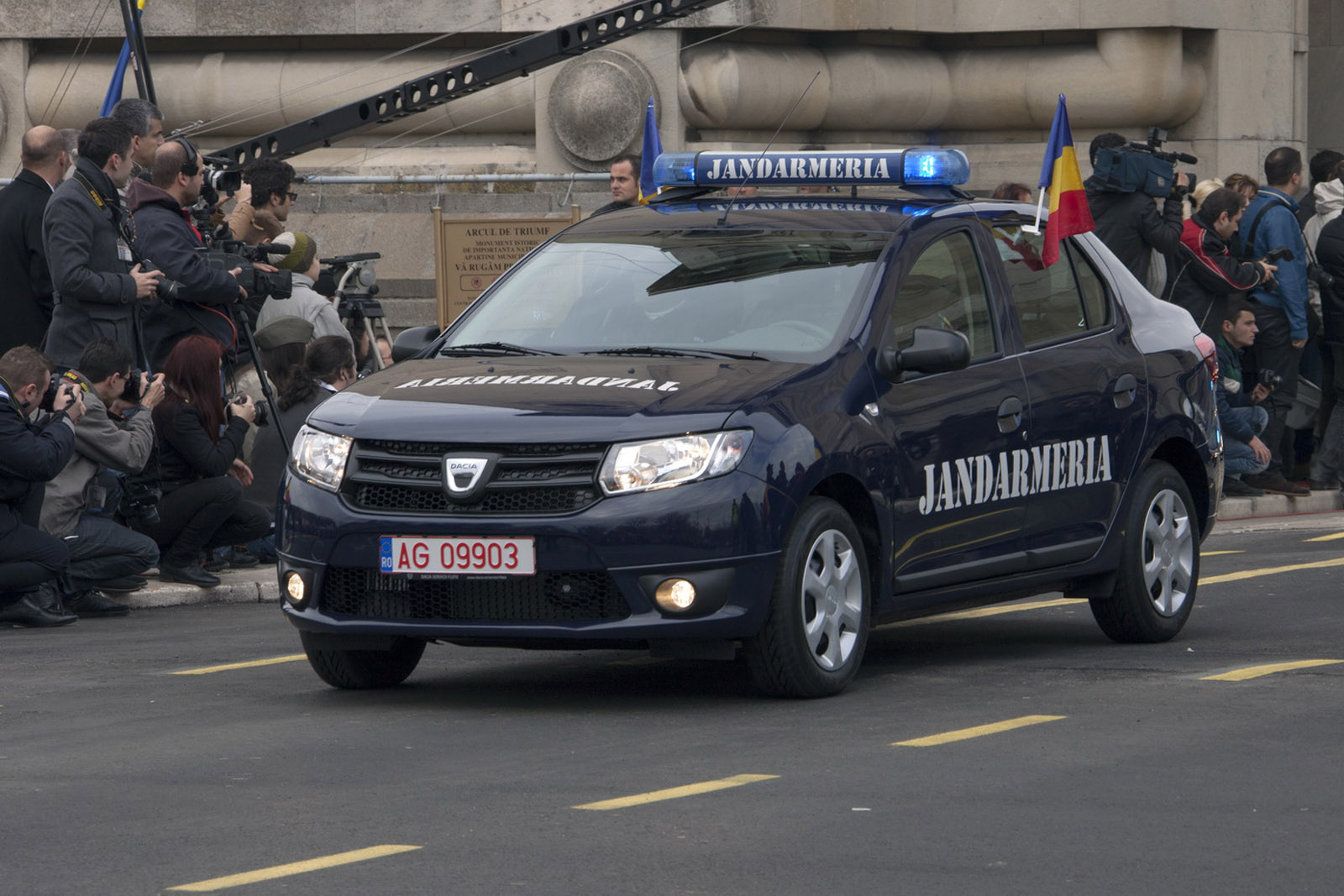 Inspectoratul General al Jandarmeriei Române a prezentat de asemenea în dispozitivul său de paradă un vehicul Dacia Logan, echipat și inscripționat cu însemnele speciale ale acestei instituții.