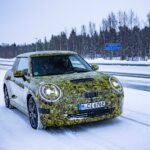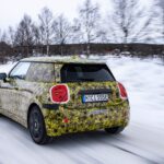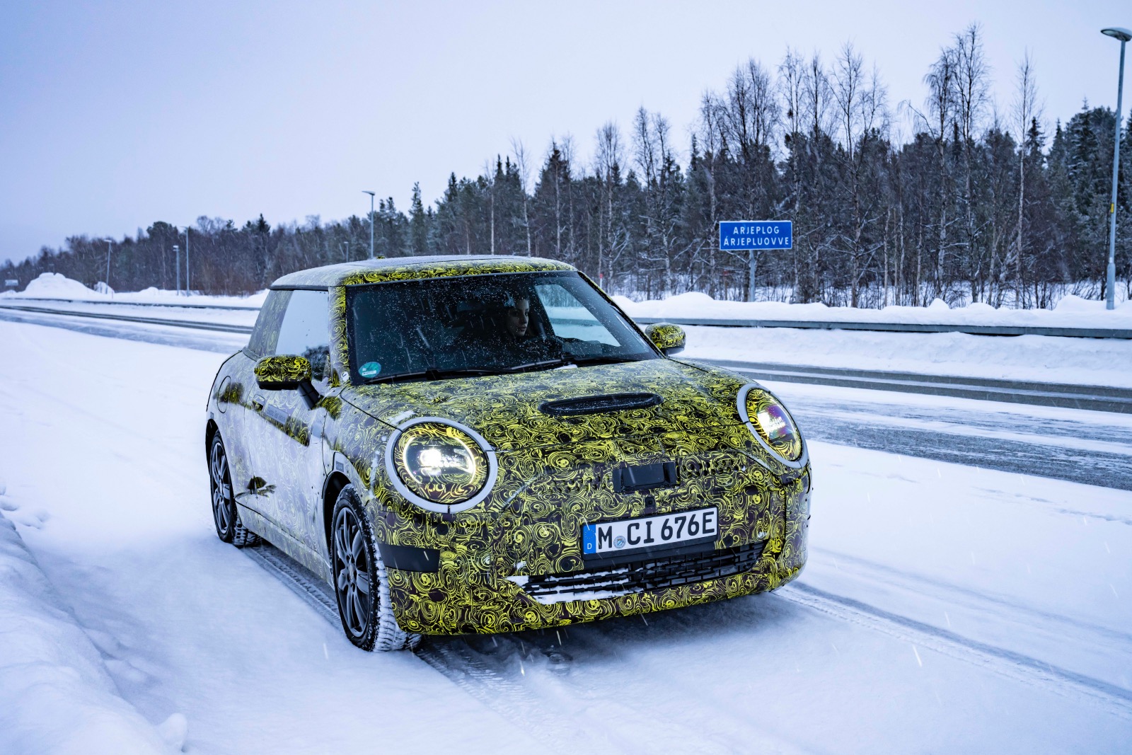 Constructorul a publicat o serie de imagini cu modeul electric în versiune camuflată din timpul testelor pe zăpadă din Arjeplog, Suedia. A cincea generație a modelului Mini Hatchback cu trei portiere va fi lansată anul viitor și va fi disponiblă atât în variantă complet electrică, cât și în versiuni cu motorizări clasice pe benzină și diesel. Modelul va dispune și de caroserie cu cinci portiere, precum și de variantă cabrio.