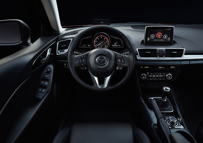 Următoarele niveluri de echipare permit progresiv dotarea noii Mazda3 cu: jante de aliaj de 18 inci, faruri Bi-Xenon, stopuri şi poziţii cu led, senzori de parcare faţă-spate, faruri adaptive, sistem audio BOSE cu 9 difuzoare, head-up display, scaune faţă încălzite, tapiterie din piele şi sistemele de siguranţă RVM, pentru monitorizarea părţii din spate, LDWS, de avertizare a depăşirii benzii de mers, SBS, de frânare inteligentă, HBCS, de control automat al fazei lungi sau MRCC, pilotul automat adaptiv. Sistemul de navigaţie integrat este optional incepand cu nivelul Challenge.